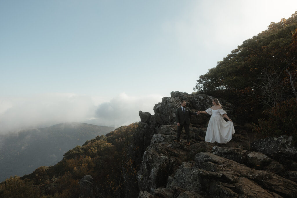 Korrin & Phil – the lovely couple you see pictured all throughout this post – had a sunrise ceremony on Hawksbill Mountain in early October. It was absolutely perfect because we caught to most dreamy fog before the sun wiped it away and we beat all the crowds!